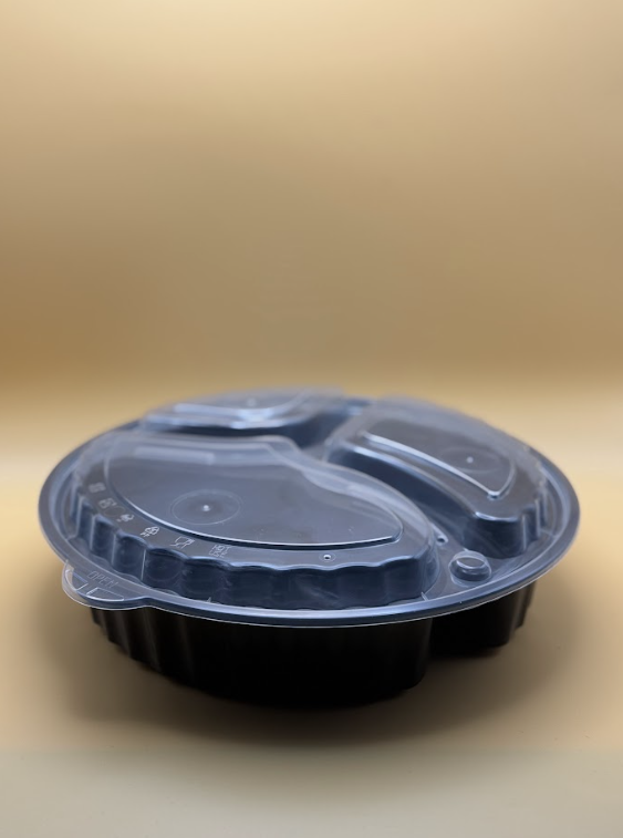 39 Oz Round 3-Compartment Microwavable Containers Combo, Black Bottom, 150/CS